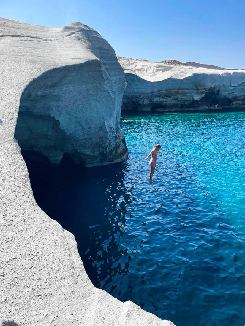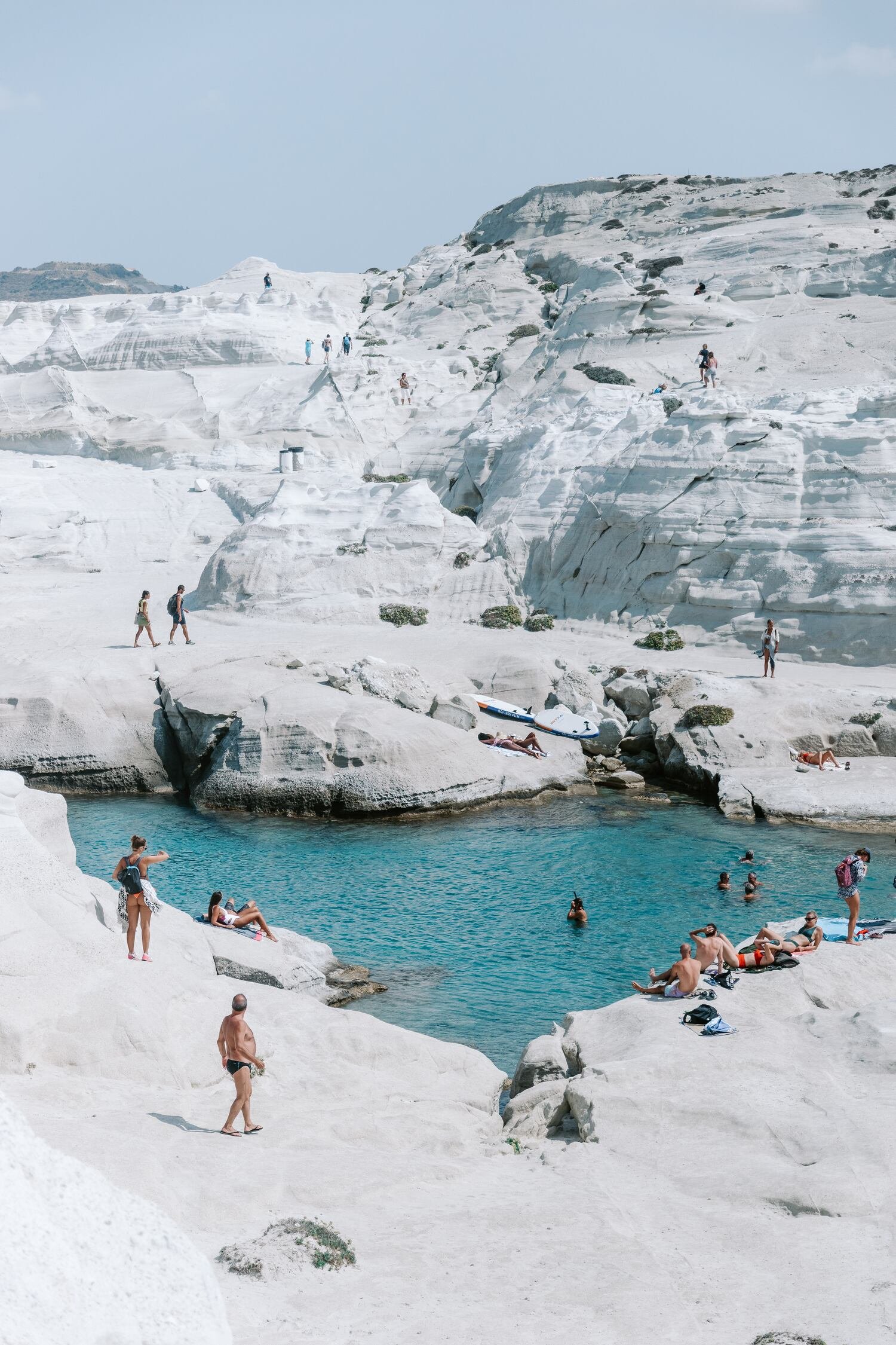 No trip to Milos is complete without visiting Sarakiniko, the island’s most iconic beach. This moon-like landscape of white volcanic rock and deep blue water looks like it belongs on another planet. It’s ideal for photography, cliff diving, or simply sunbathing in a surreal setting.